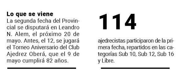 Con un total de 114 participantes, el sábado se puso en marcha la primera fecha del Campeonato Provincial de Ajedrez. El semillero se reunió en San Vicente y ya se coronaron a los primeros ganadores de la temporada.