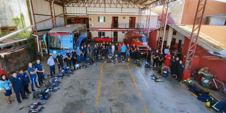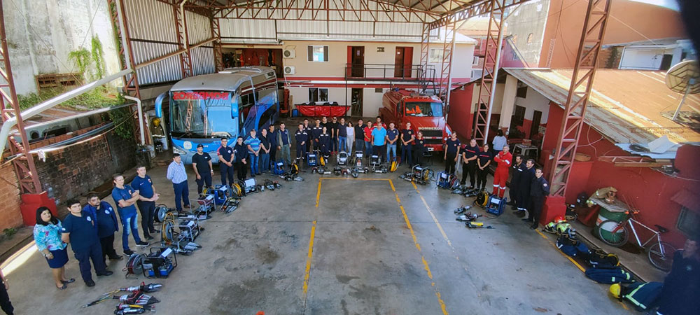 En la sede de Bomberos Voluntarios de Puerto Iguazú, se entregaron 14 equipos hidráulicos de rescate vehicular que fueron donados por Bomberos y Médicos en Acción de Málaga (España) a distintos cuarteles que no contaban con estas herramientas.