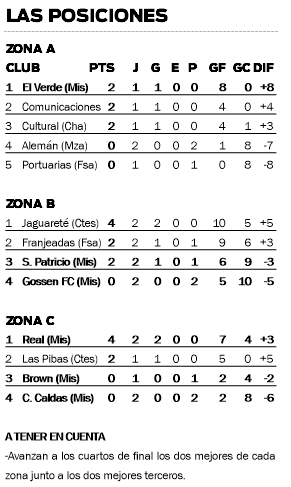 El otro equipo de la tierra colorada que manda en su grupo es Real de San Vicente, producto de las dos victorias que cosechó hasta el momento. El domingo, en el debut, las encabezadas por Hernán Culaciatti derrotaron ni más ni menos que a Jorge Gibson Brown de Posadas por 4-2. Y ayer por la tarde conquistaron su segundo triunfo al hilo, tras imponerse sobre las también posadeñas de Cinco Caldas, por un agónico 3-2.