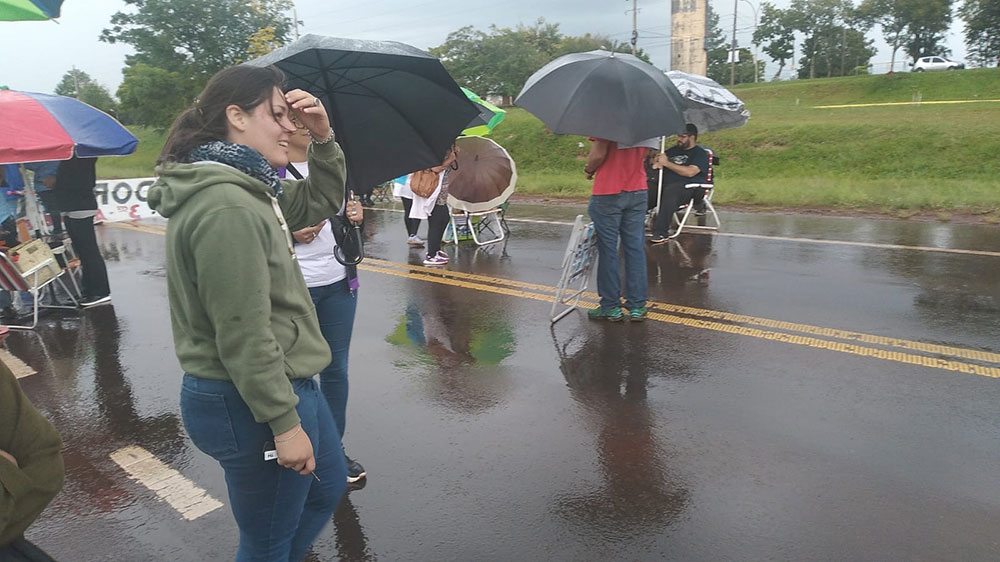 Asimismo, en la capital provincial, el FTEL, junto a los gremios ATE, Marea Blanca, CTA A, UDNAM, bajo la lluvia se realiza una vigilia en la plaza 9 de Julio, frente a Casa de Gobierno, a la espera de lo que suceda en la mesa de diálogo con las autoridades educativas.