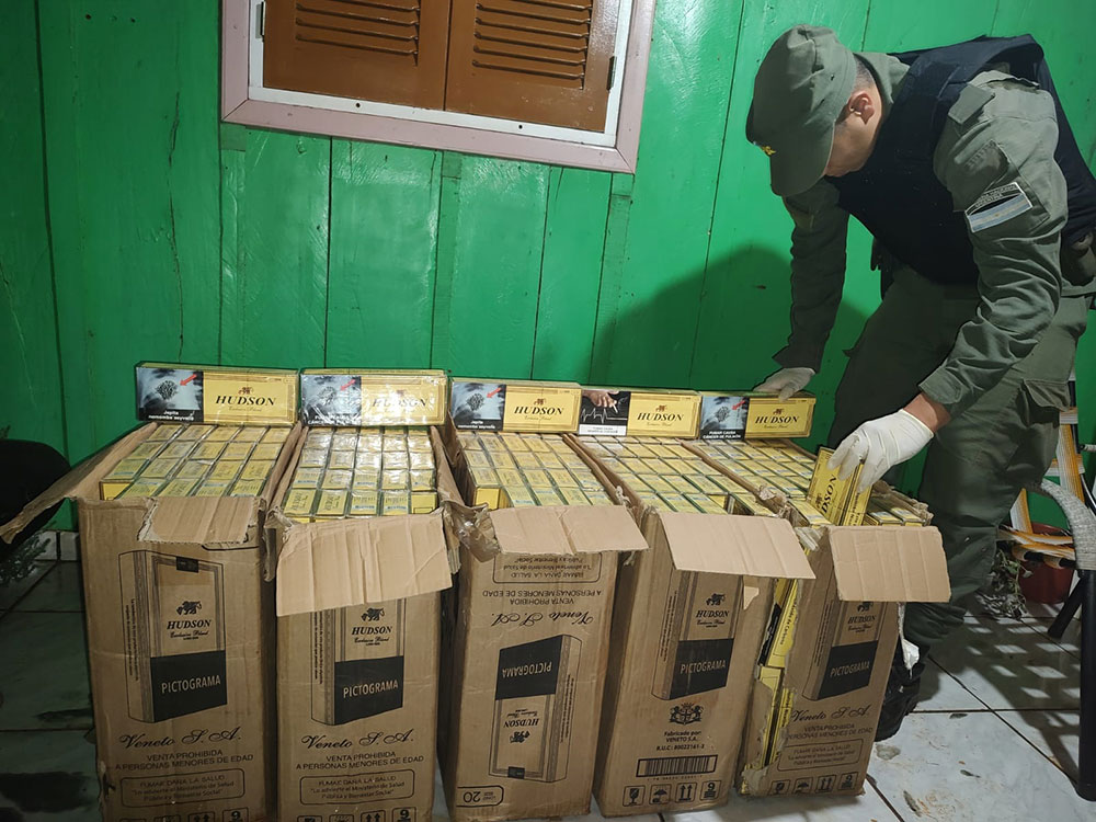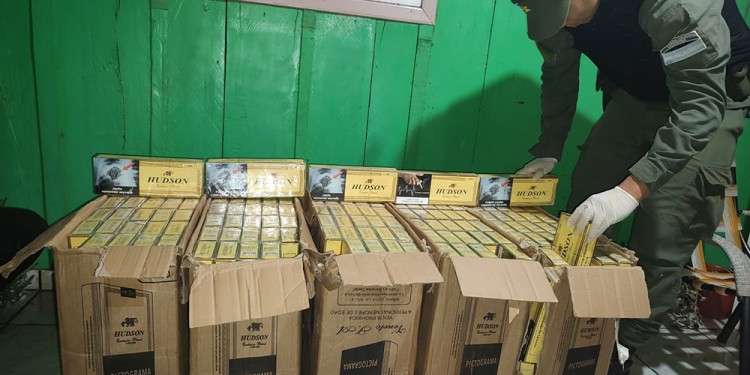 El magistrado interviniente orientó el allanamiento del inmueble, mediante el cual concretaron el hallazgo de 2.500 paquetes de cigarrillos que no contaban con el correspondiente aval aduanero. También incautaron los dos vehículos involucrados y los celulares de los dos hombres demorados.