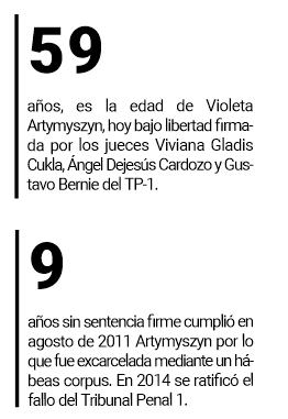 Artymyszyn ingresó a la nueva etapa de su reinserción tras cumplir poco más de doce años de encierro directo, como sentenciada y en la Unidad Penal V del Servicio Penitenciario Provincial. Vale recordar que entre agosto de 2011 y febrero de 2014 estuvo libre por un hábeas corpus presentado por el defensor oficial Marcelo Ozuna, quien recurrió la condena en la Corte Suprema de Justicia de la Nación y por el largo plazo sin sentencia firme desde 2006 le correspondía aguardar en libertad.