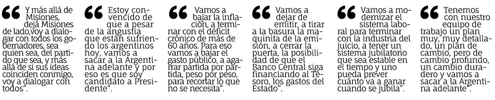 Yo ya lancé mi candidatura. Estoy convencido que la Argentina necesita un cambio, yo estoy preparado para llevar el país adelante con el cambio profundo y duradero que la Argentina necesita. Tengo muchos años de experiencia en el Estado, he recorrido todo el país para entender la situación de cada economía regional, de cada provincia, de cada municipio, y ese cambio lo voy a llevar adelante. Estoy convencido de que, a pesar de la angustia que están sufriendo los argentinos hoy, vamos a sacar a la Argentina adelante y por eso es que soy candidato a presidente.