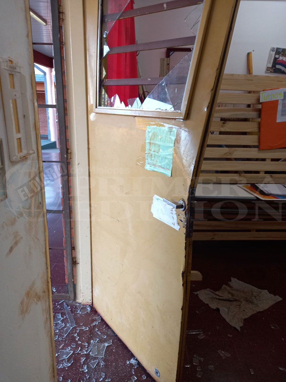 María Romero, docente de 4° B, explicó a PRIMERA EDICIÓN que “fuimos víctimas de un robo muy violento. Se llevaron la cocina, la garrafa, elementos para cocinar, utensilios, la materia prima y lo que no pudieron acarrear destruyeron, como por ejemplo la heladera. También se ve que buscaban otros elementos de mayor valor porque fueron abriendo y forzando otras puertas, inhabilitando por ejemplo la puerta principal de cierre y de la Dirección”.