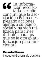 Por eso, ahora la Inspección misma detectó que la ONG “fue utilizada como instrumento de financiamiento para actos proselitistas”.