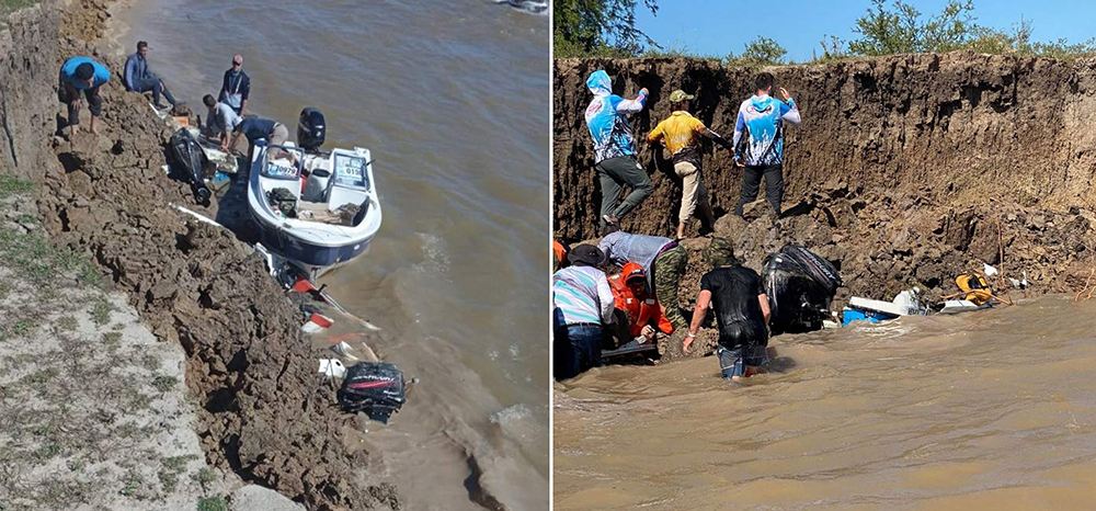 Una situación de mucha tensión se vivió este sábado, en horas del mediodía, en la localidad correntina de Lavalle, a orillas del río Paraná, cuando un grupo de tres lanchas fueron aplastadas tras el derrumbe de una barranca de la zona.