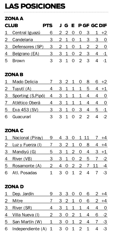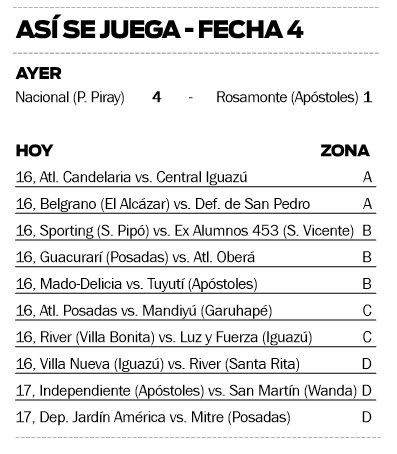 Los de Piray volvieron a la cima de su grupo, al menos hasta que se complete la fecha en el día de hoy. Esperará una mano de River de Villa Bonita para que le arrebate al menos un punto a Luz y Fuerza. Juegan desde las 16 en suelo obereño.