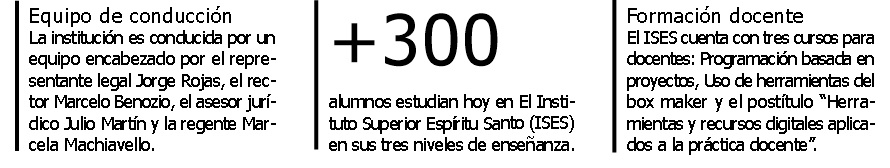 “Nuestra esencia institucional fue, desde el principio, estar siempre a la vanguardia y tratamos de mantenerla a lo largo de estos 61 años. Cuando comenzamos con el nivel secundario, elegimos una orientación que también nos obliga a buscar siempre la vanguardia. Lo mismo con el terciario, con la Tecnicatura Superior en Desarrollo de Aplicaciones y Página Web que es algo necesario hoy y una exigencia del mundo actual. Nosotros trabajamos con ese propósito, que nuestros alumnos salgan de la institución formados para saber hacer algo que el mercado y la sociedad demandan. Trabajamos para que ellos mismos puedan superarse día a día a partir de lo que pueden generar, siempre teniendo en cuenta la innovación y la búsqueda de ideas nuevas y superadoras”, indicó el coordinador del departamento de comunicación del instituto Superior Espíritu Santo, Javier Obando, quien habló con PRIMERA EDICIÓN junto a todo el equipo directivo.