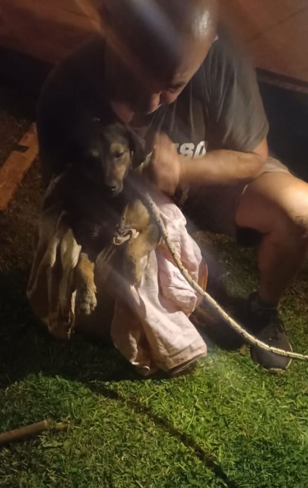 Sin embargo, el perro estaba asustado y lastimado, por lo que impulsivamente corrió y terminó cayendo a una alcantarilla. Ante la imposibilidad de poder rescatarlo por su cuenta, la mujer llamó a la Policía.