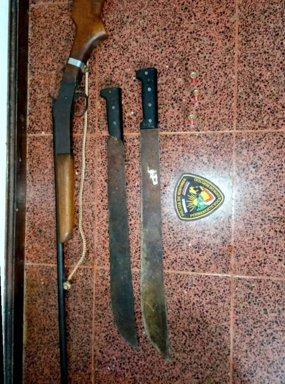 Además, en el mismo terreno encontraron una escopeta Amadeo Rossi calibre 36 con un cartucho en la recámara percutido. Luego, en el interior del bar también hallaron dos cartuchos: uno disparado y otro intacto, junto a dos machetes.