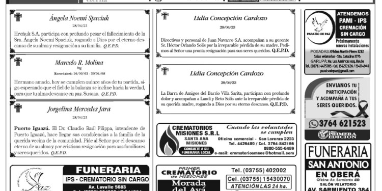 Fúnebres del domingo 30 de abril de 2023