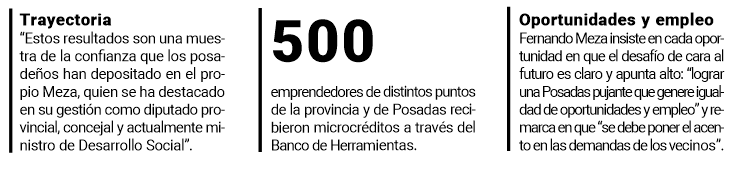 “Estos resultados son una muestra de la confianza que los posadeños han depositado en el propio Meza, quien se ha destacado en su gestión como diputado provincial, concejal y actualmente ministro de Desarrollo Social. En él, destacan la experiencia, el conocimiento de las necesidades de la gente y la cercanía con los vecinos como algunos de los motivos que influyen en su elección”, expresaron desde el entorno del candidato.
