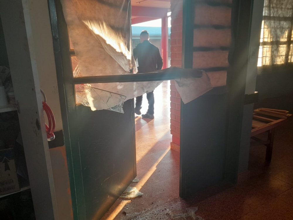Para ingresar, los delincuentes destrozaron la puerta y sustrajeron los elementos mencionados, hasta el momento pudieron recuperar solamente la garrafa, dijo a PRIMERA EDICIÓN, Belén Morenate, directora de la escuela.