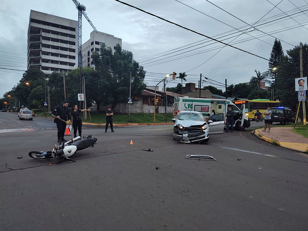 Esta mañana un automovilista y un motociclista protagonizaron un siniestro vial en la intersección de las avenidas López Torres y Maipú de la ciudad de Posadas.