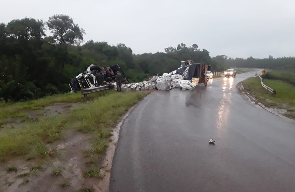 A raíz del impacto, el primer vehículo despistó quedando sobre la cinta asfáltica obstruyendo un carril de circulación; el segundo en tanto volcó sobre la banquina, quedando en posición invertida. Ambos camiones perdieron sus respectivas cargamentos.