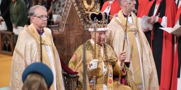 Carlos III fue coronado como rey del Reino Unido hoy en una ceremonia que se llevó a cabo en la Abadía de Westminster, en el corazón de la capital británica. Tras colocarle la corona, el arzobispo Justin Welby, exclamó a la congregación presente “Dios salve al Rey”, tras lo cual se escucharon trompetas.