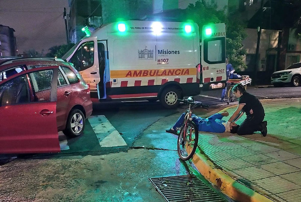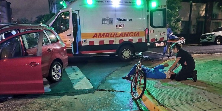 Efectivos de la comisaría Cuarta y profesionales de la salud debieron intervenir el viernes por la noche para asistir y trasladar con lesiones de distinta gravedad a un ciclista que fue colisionado sobre la bicisenda de la calle Salta en el cruce con 25 de Mayo en el centro de Posadas.