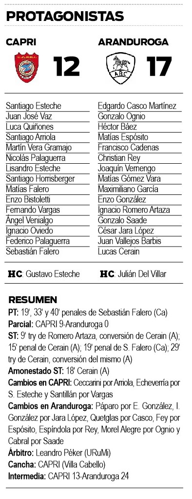 Lo que tuvo un inicio esperanzador, se cerró con un final desencantador para CAPRI, que ayer sumó una nueva derrota, la segunda consecutiva y cuarta en total, al caer como local frente a Aranduroga de Corrientes por 17 a 12, en el marco de la sexta fecha del Súper 10 del Torneo Regional de rugby del Nordeste.