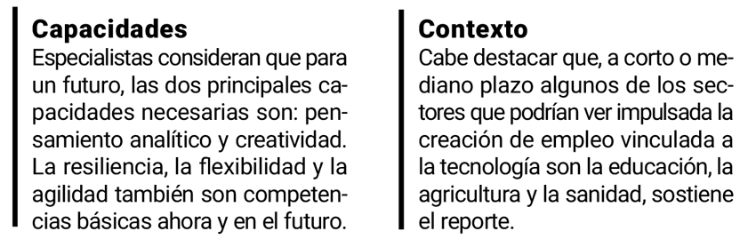 “La mayoría de las funciones de crecimiento más rápido de la lista están relacionadas con la tecnología. La mayoría de las funciones con mayor declive son las de oficina o secretaría, siendo las de cajeros de bancos y afines, empleados de servicios postales y cajeros de comercios las que se espera que disminuyan más rápidamente”, analizó el WEF.
