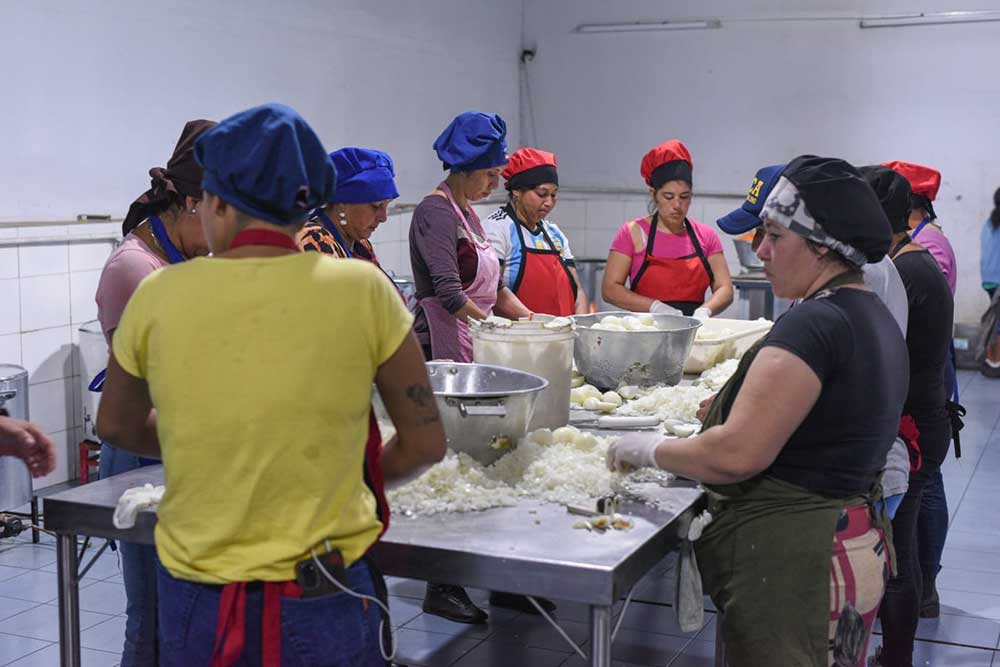 La cocina que trabaja los siete días de la semana, tiene un sistema de cocina centralizada y descentralizada donde preparan diariamente alrededor de 80 ollas populares que son distribuidas a diferentes barrios y comedores de la Capital Provincial.