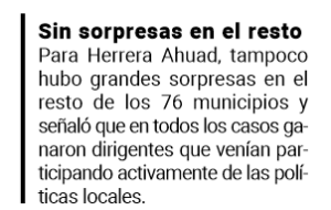 Sobre este tema, Herrera Ahuad dijo que no le sorprendió ningún resultado, inclusive aquellos que tendrán otro color político durante los próximos cuatro años.