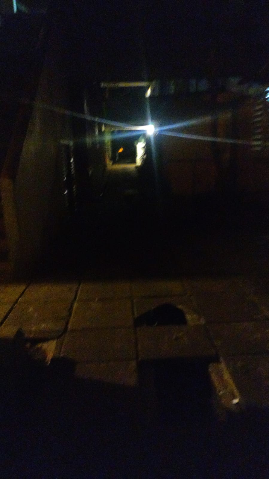 Vecinos de este sector de Villa Cabello advierten que desde hace dos semanas están a oscuras entre los edificios debido a un cortocircuito en una de las jirafas.