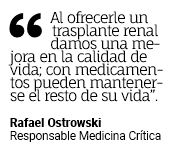 El trasplante renal es el que más se procura porque es el que más impacto tiene en la sociedad. “Son pacientes que no están en su casa tres veces a la semana, cuatro horas porque dependen de una máquina. Al ofrecerle trasplantarse lo que hacemos es darle una mejora en la calidad de vida, al estar en su casa con medicamentos pueden mantenerse el resto de su vida con ese trasplante”.