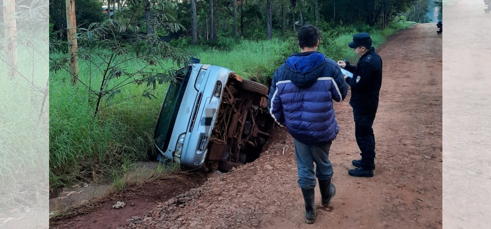 Un joven albañil de 24 años circulaba en su combi Hyndai por la avenida Picada Vieja cuando por causas que se tratan de establecer perdió el control del rodado y terminó dentro de un desagüe ubicado a pocos metros de la intersección con la calle Picada Oasis.