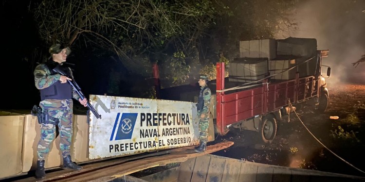 La fronteriza localidad de El Soberbio fue escenario del secuestro por parte de Prefectura Naval Argentina de un cuantioso cargamento de tabaco procesado, sin aval aduanero, valuado en más de cuatro millones y medio de pesos.