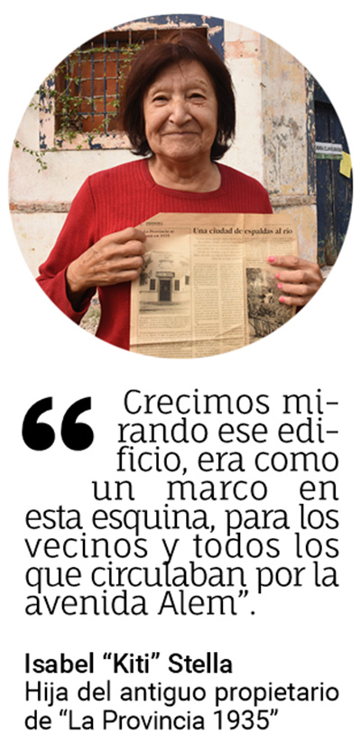 Duarte manifestó que esta edificación funcionó como un punto de referencia en los años 60 y 70, cuando la gente transitaba por la avenida Alem, que en ese entonces era de tierra. “Era común decir nos encontramos en la esquina de La Provincia 1935”, observó.