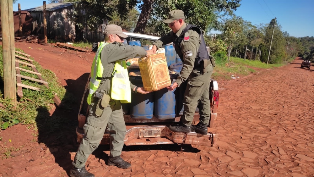 Los efectivos procedieron al decomiso del combustible porque el conductor no pudo justificar la procedencia del mismo y además tanto el vehículo como los recipientes no estaban habilitados para el transporte de sustancias peligrosas.