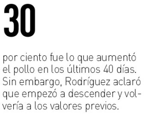 En referencia al pollo, explicó que “tuvo un aumento de 30% en los últimos 40 días a raíz de la gripe aviar que hizo estancar las exportaciones, pero comenzó a bajar y volverá a los valores previos”.