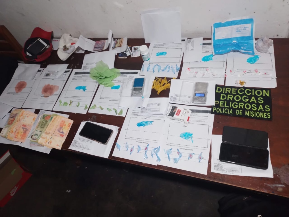 Una vez en el lugar los efectivos secuestraron un total de 61.840 pesos en efectivo, cuatro teléfonos celulares, 13,3 gramos de “clorhidrato de cocaína” discriminados en 44 envoltorios preparados para su comercialización, 0,6 gramos de cannabis sativa y cuatro blisters de “Enalapril” 10 miligramos con un total de 120 pastillas, señalaron las fuentes.