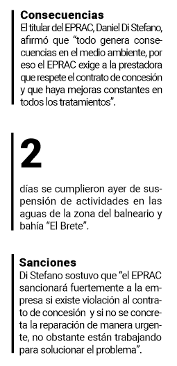 Y sostuvo que “el EPRAC sancionará fuertemente a la empresa si existe violación al contrato de concesión y si no se concreta la reparación de manera urgente, no obstante están trabajando para solucionar el problema”.