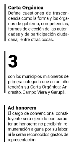 Sin embargo, estos últimos comicios fueron muy especiales para tres municipios de la provincia. Los ciudadanos de Andresito, Campo Viera y Garupá tuvieron que elegir en el cuarto oscuro los convencionales constituyentes que redactarán las primeras cartas orgánicas de esas localidades.