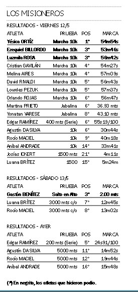 El de mejor rendimiento fue el obereño Agustín Da Silva, actual dueño del récord misionero en los 5 mil metros. Agustín compitió justamente en esa modalidad, en la que terminó undécimo sobre 26 participantes con un registro de 14m52s. Nada mal para Da Silva, que el viernes también tuvo una buena jornada con el sexto puesto que alcanzó en la prueba de diez kilómetros.