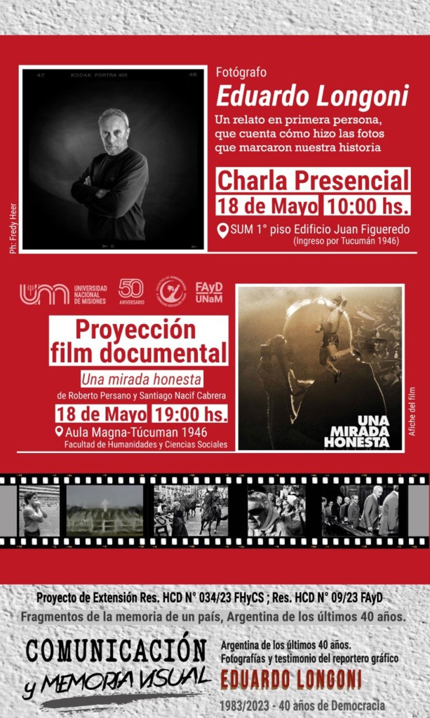 Este jueves 18 de mayo se llevará a cabo un evento muy especial para la comunidad educativa de Misiones. Y es que en el marco del aniversario número 50 de la UNaM y a 40 años del regreso de la democracia en Argentina, la Facultad de Humanidades y Ciencias Sociales (FHyCS) y la Facultad de Arte y Diseño (FAyD) de la Universidad Nacional de Misiones (UNaM) a través del proyecto de extensión “Comunicación y Memoria” que llevan a cabo en conjunto, organizaron una charla/debate que tendrá como protagonista al fotógrafo responsable de una de las imágenes más icónicas de la historia del país.