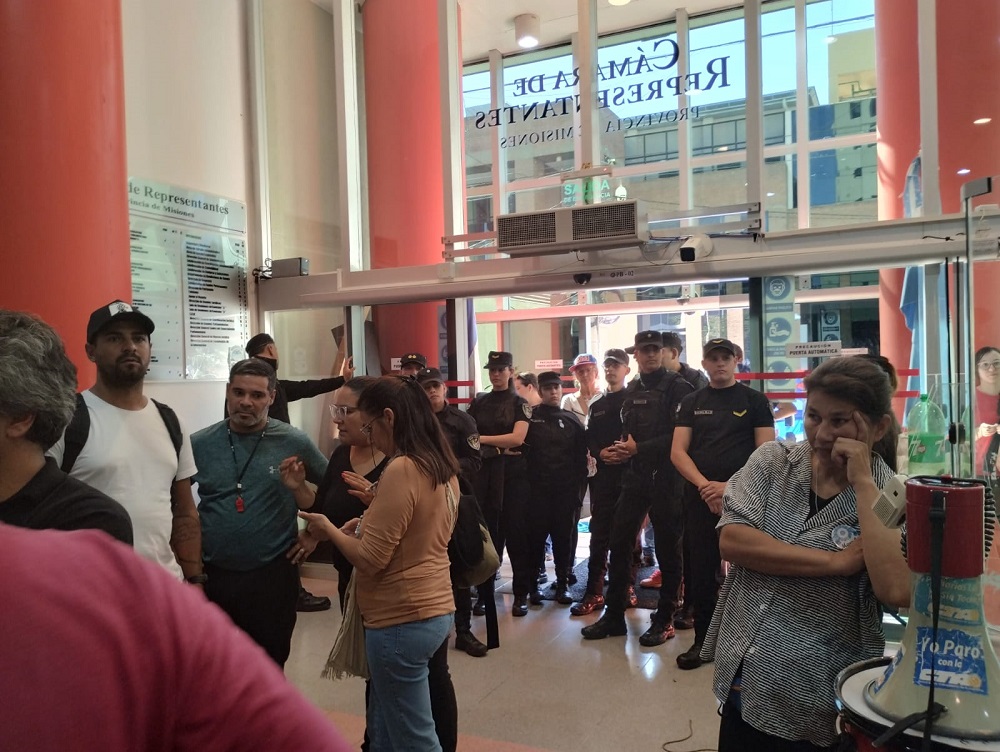 Alrededor de las 11 de este jueves los docentes que se movilizaron durante la mañana en el marco de su reclamo salarial ingresaron a la Cámara de Diputados para entregar un petitorio y permanecen allí porque nadie los recibe.