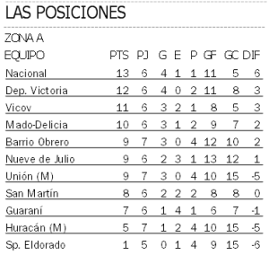 Nacional de Puerto Piray recuperó la punta del torneo eldoradense al vencer por 3-1 al Globo montecarlense, en un cotejo pendiente del certamen. La octava fecha se iniciará mañana con dos encuentros: B° Obrero vs. Deportivo Vicov y San Martín vs. Deportivo Victoria. Los demás equipos lo harán el domingo.