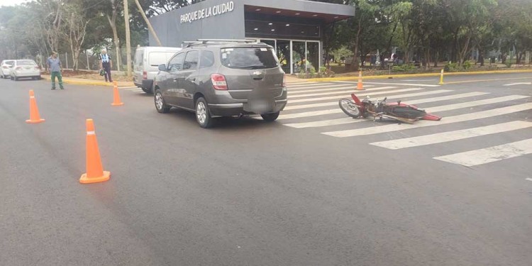 Esta tarde el 911 recibió un llamado alertando sobre un accidente en avenida Quaranta frente al Parque de la Ciudad que tuvo como protagonistas a un automóvil y una motocicleta