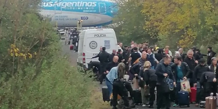 Efectivos de la Policía de Seguridad Aeroportuaria (PSA), autoridades aeroportuarias y el control terrestre de la Administración Nacional de Aviación Civil (ANAC) intervinieron frente a este hecho.