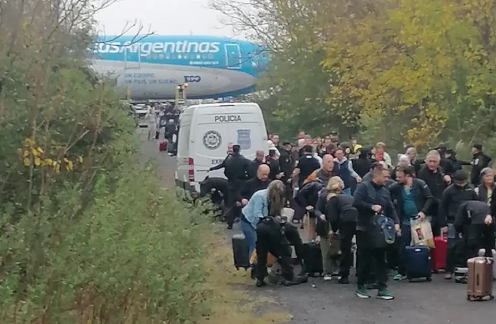 Efectivos de la Policía de Seguridad Aeroportuaria (PSA), autoridades aeroportuarias y el control terrestre de la Administración Nacional de Aviación Civil (ANAC) intervinieron frente a este hecho.