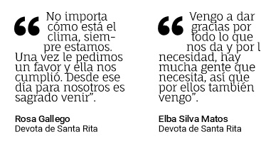 “Todos los años siempre venimos, no interesa cómo está el clima, siempre estamos con Santa Rita. Una vez le pedimos un favor y ella nos cumplió. Desde ese día para nosotros es sagrado venir”, compartió la mujer a este diario. Agregó que Adolfo tenía epilepsia y que gracias a ella no tuvo ningún episodio más hasta el día de hoy.