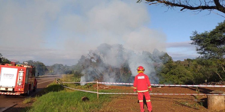 Al llegar, corroboraron que un montículo de residuos de aserradero estaba prendiéndose fuego. Sin embargo, había sido removido con una máquina pesada hacia la banquina, para evitar la expansión del fuego.