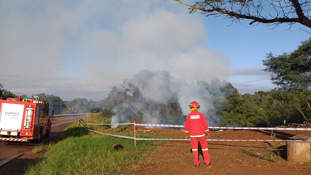 Al llegar, corroboraron que un montículo de residuos de aserradero estaba prendiéndose fuego. Sin embargo, había sido removido con una máquina pesada hacia la banquina, para evitar la expansión del fuego.