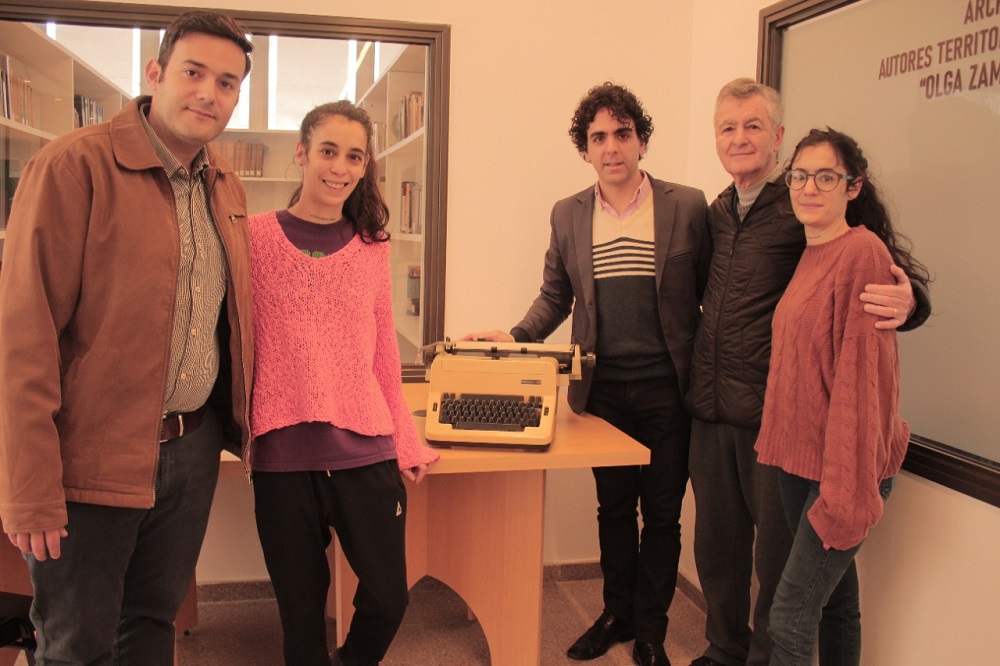 La familia donó una máquina de escribir de Hugo Wenceslao Amable al archivo de autores territoriales alojado en el Museo Regional “Aníbal Cambas”. En la foto algunos de los nietos y yerno, entregando la máquina.