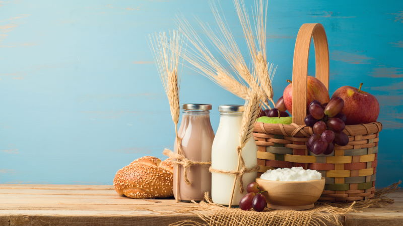 Durante la festividad se acostumbra a comer lácteos, acompañados por las siete especias características de Israel.