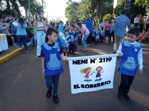 La localidad misionera de El Soberbio está de fiesta: hoy celebra su aniversario número 77 con un desfile de los niños de jardín del NENI Nº2119, y los alumnos de primaria y secundaria de la Escuela Nº740, seguido de un acto en el que participaron el vicegobernador Carlos Arce y el intendente de la ciudad, Roque Soboczinski.