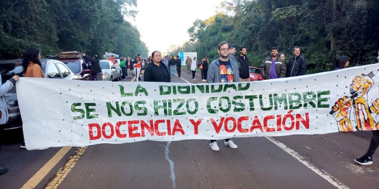 En ese marco, el Frente de Trabajadores de la Educación en Luchas (FTEL) lleva a cabo un corte total de la ruta nacional 12, en el acceso a la ciudad de Puerto Iguazú, de acuerdo al plan de lucha pactado para esta semana.