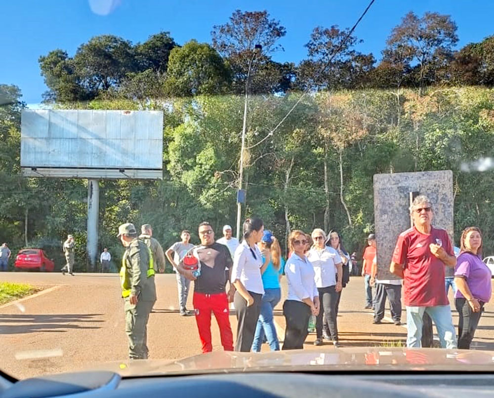 Pasadas las 14 horas, luego de casi dos horas de esperar en la zona de la T a que los taxistas cambiaran su postura, los manifestantes se dirigieron hacia la ciudad de las Cataratas pero también ahí se encontraron con otro grupo de taxistas y policías que les impidieron ingresar a la ciudad.